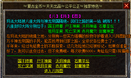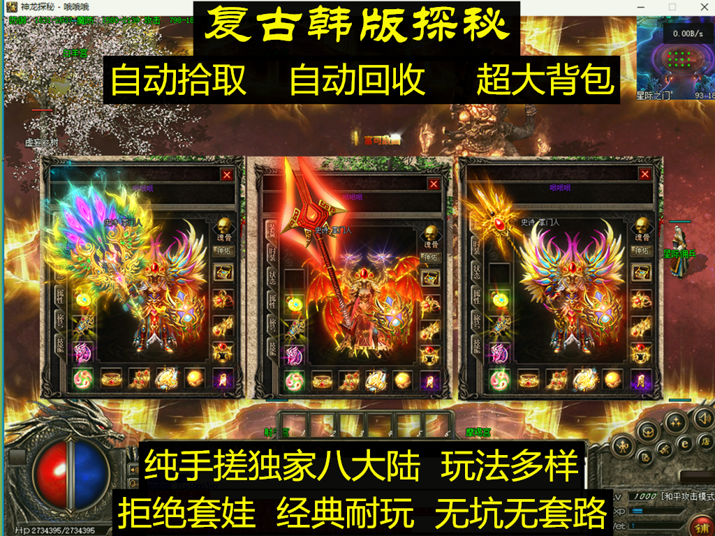 八大陆,从布衣到神装,场景宏大,玩法新颖,精心版本制作。